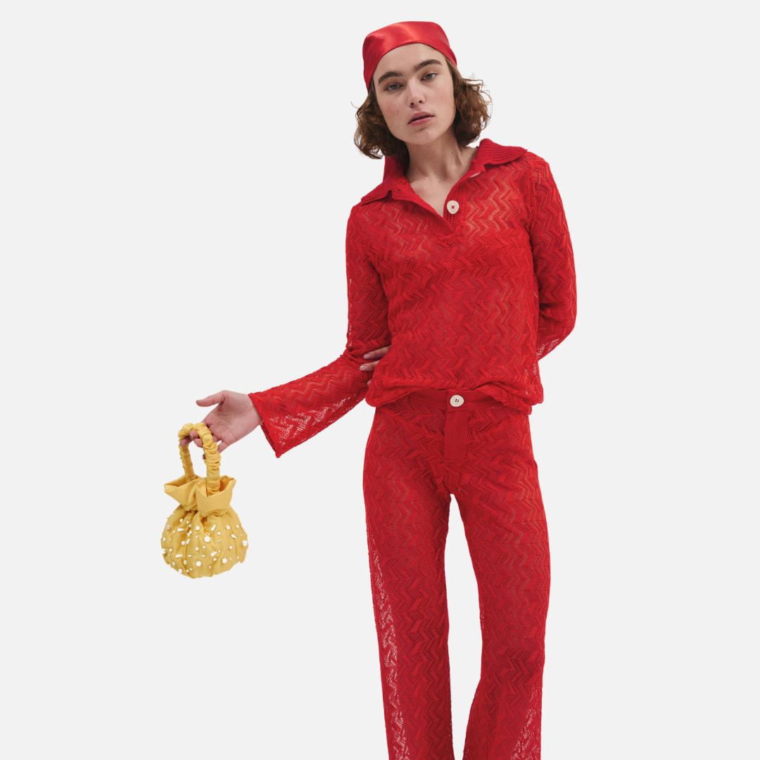 Archive Dumpling Bag, a nostalgic nod to the great Yves Saint Laurent We have crafted our beloved dumpling silhouette. with a softly gathered handle and delicate bead accents. Designed to hold its shape while adding texture and charm.