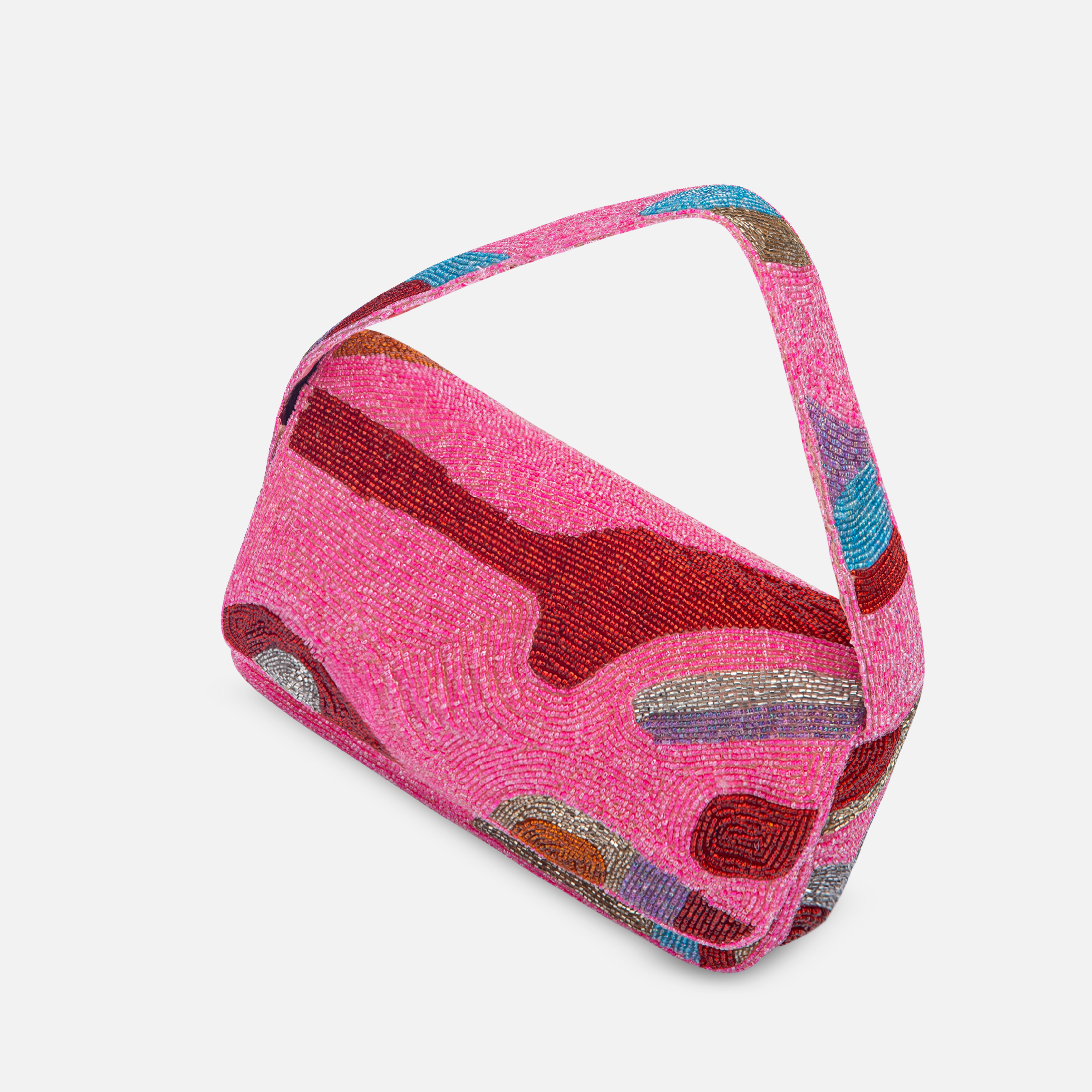 The Dark Side is a multi-coloured beaded shoulder bag lined with Satin. Named after our deep appreciation to one of the greatest music masterpieces. Dark Side features a single flap closure, an inner zip pocket and an outer magnetic closure.