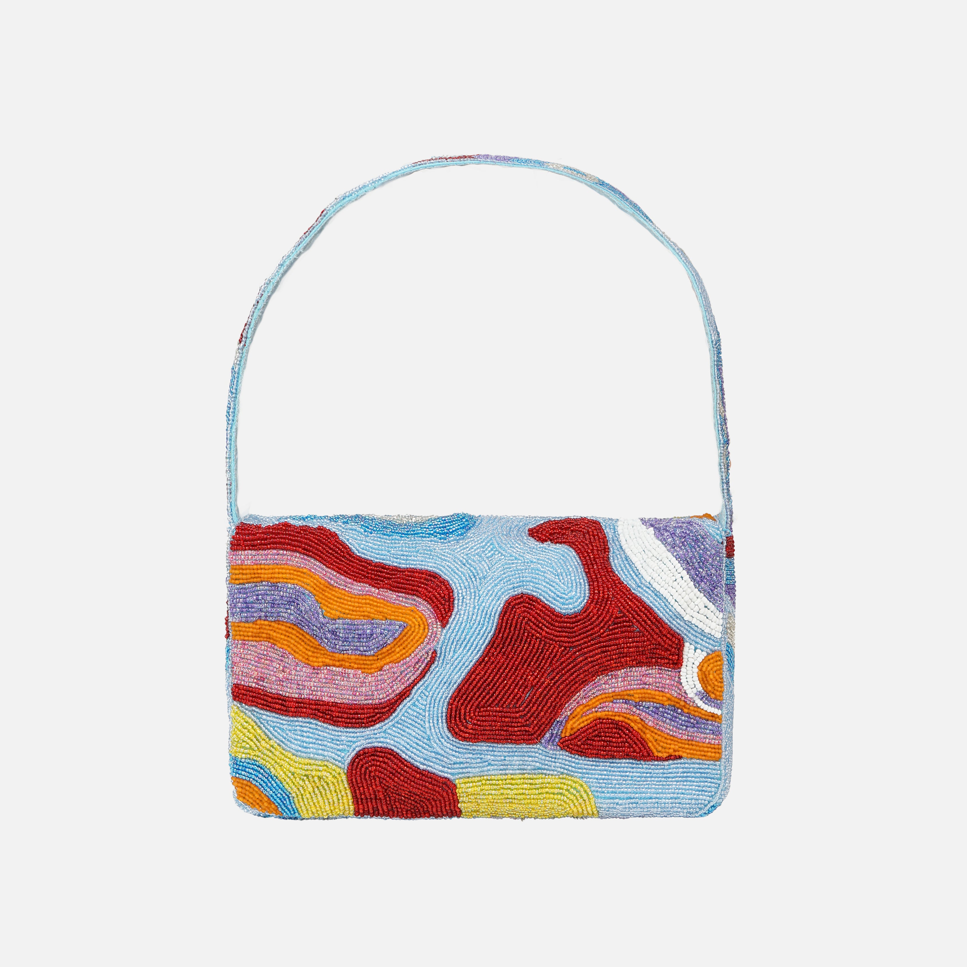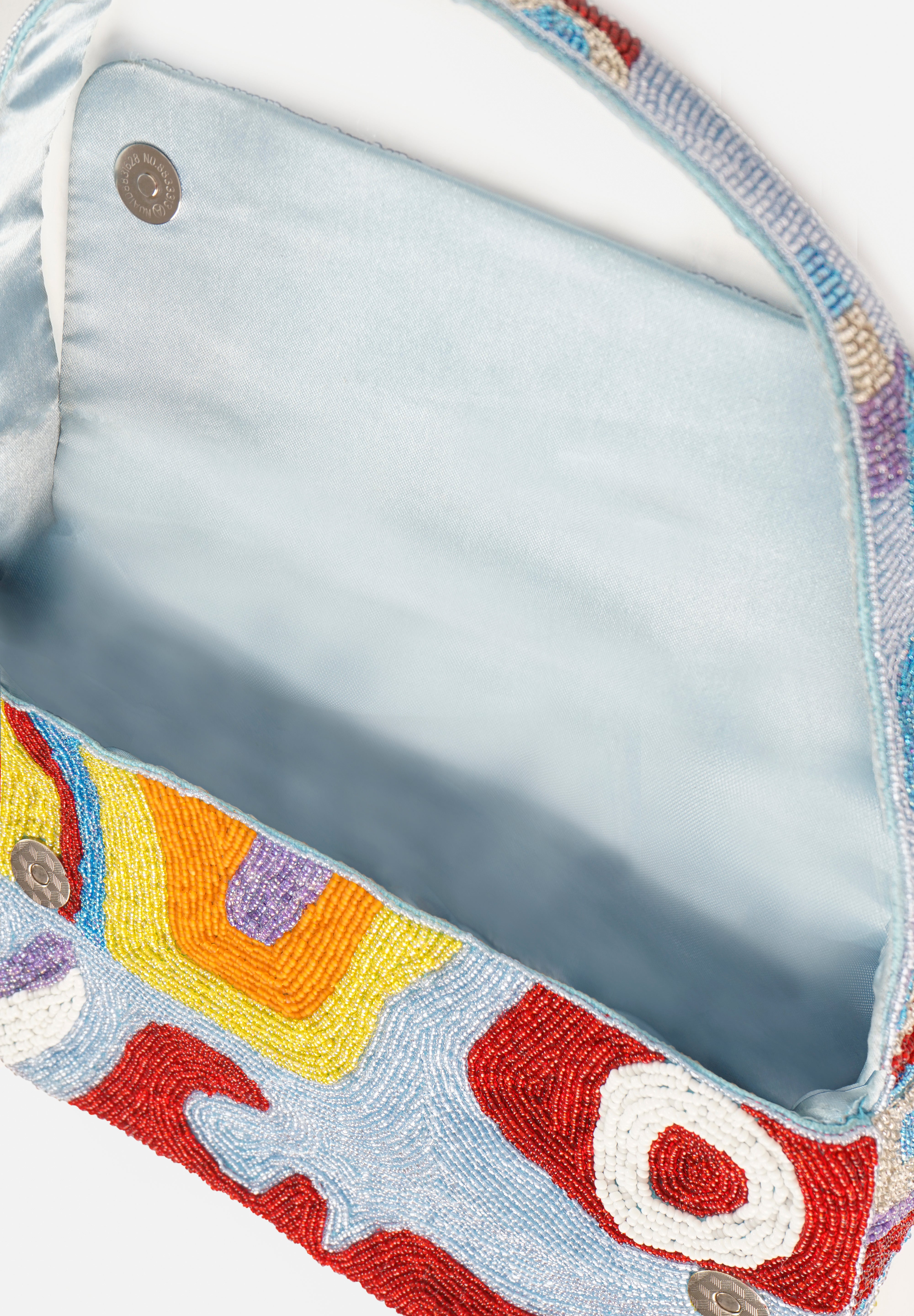 The Rivers Run Deep bag is the newest colourway to our Dark Side of the Moon family. Inspired by the saying " something borrowed, something blue"... This is calling all our bridal girlies. Crafted over 25 hours, this beaded beauty features a soft satin lining, a single flap closure. Its structured interior has a slip pocket for cards, plus enough space for your lipstick, makeup compact and spare hair ties