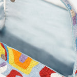 COMPOSITION  Body: 100% Cottondrill - Embellishments: synthetic beading print covers bag - Lining: 100% satin